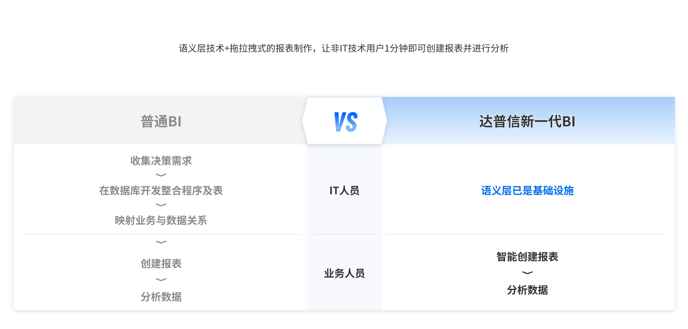 數據分析工具BI產品,是公司自主研發全新一代具有強大的語義層功能的BI產品。具有強大的語義層功能,填補了國內BI產品語義層技術的空白,并且無需手動處理復雜的環路及上下文,更加簡單易用。