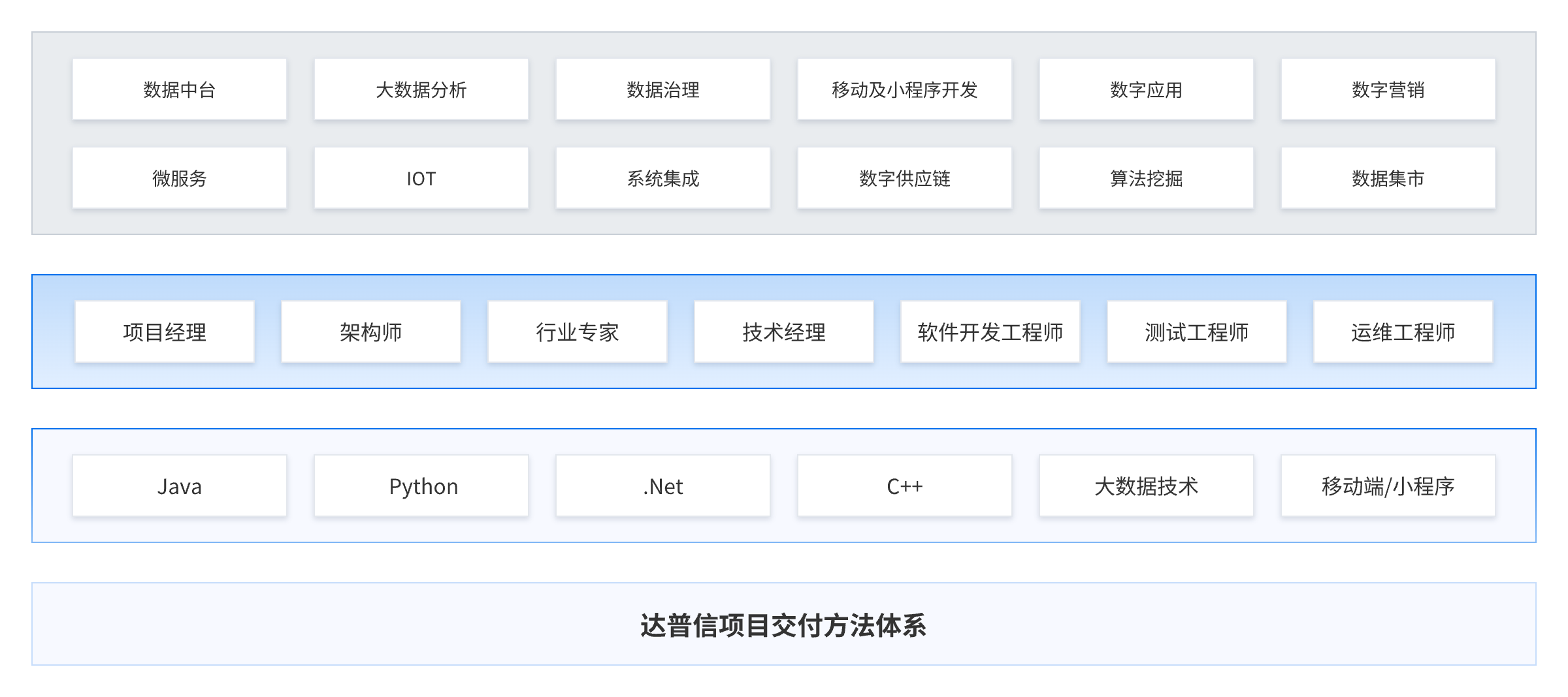 達普信以技術為核心,以業務理解為驅動力,通過解決方案、技術支撐、數據處理及ITO服務等方面的能力,構建企業全渠道、全領域、全場景等生態體系。