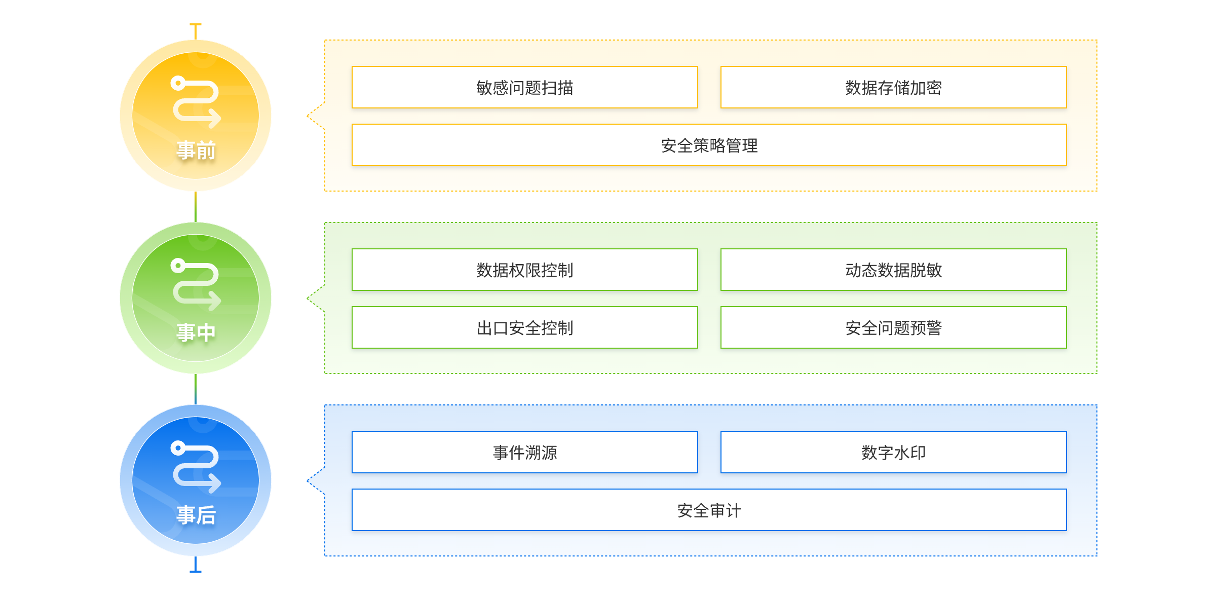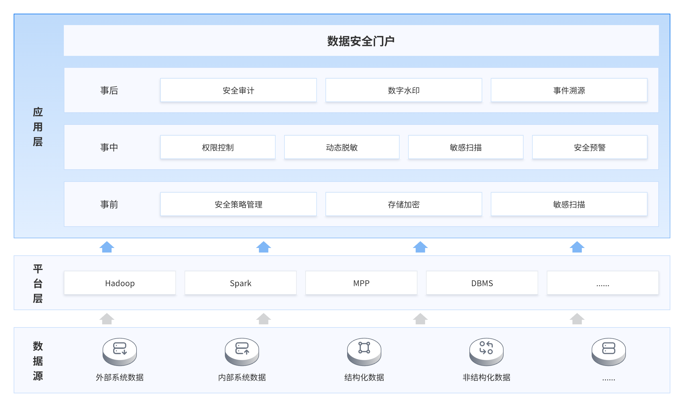 達(dá)普信數(shù)據(jù)安全平臺(tái),幫助企業(yè)客戶建設(shè)數(shù)據(jù)安全防護(hù)體系,為大數(shù)據(jù)平臺(tái)提供體系化的安全策略。通過事前數(shù)據(jù)安全管理、事中數(shù)據(jù)安全控制和事后數(shù)據(jù)安全管控多種手段保障。