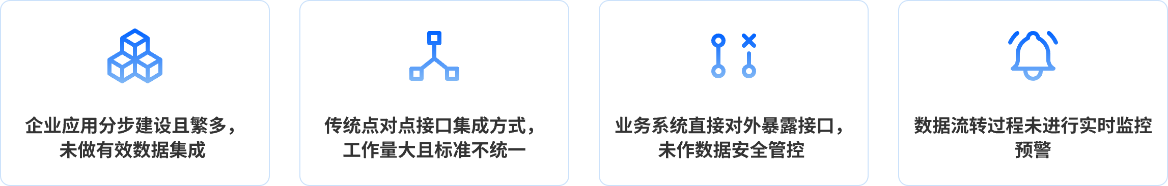 隨著企業客戶業務的不斷發展,業務系統間交互漸漸增多,各業務系統接口規范不一致, 安全管控機制不一致, 導致各系統間對接起來難度大,對接效率低, 同時不同系統間對接需進行大量的定制化開發, 為解決這一問題,達普信提出數據交換平臺DataEx解決方案: