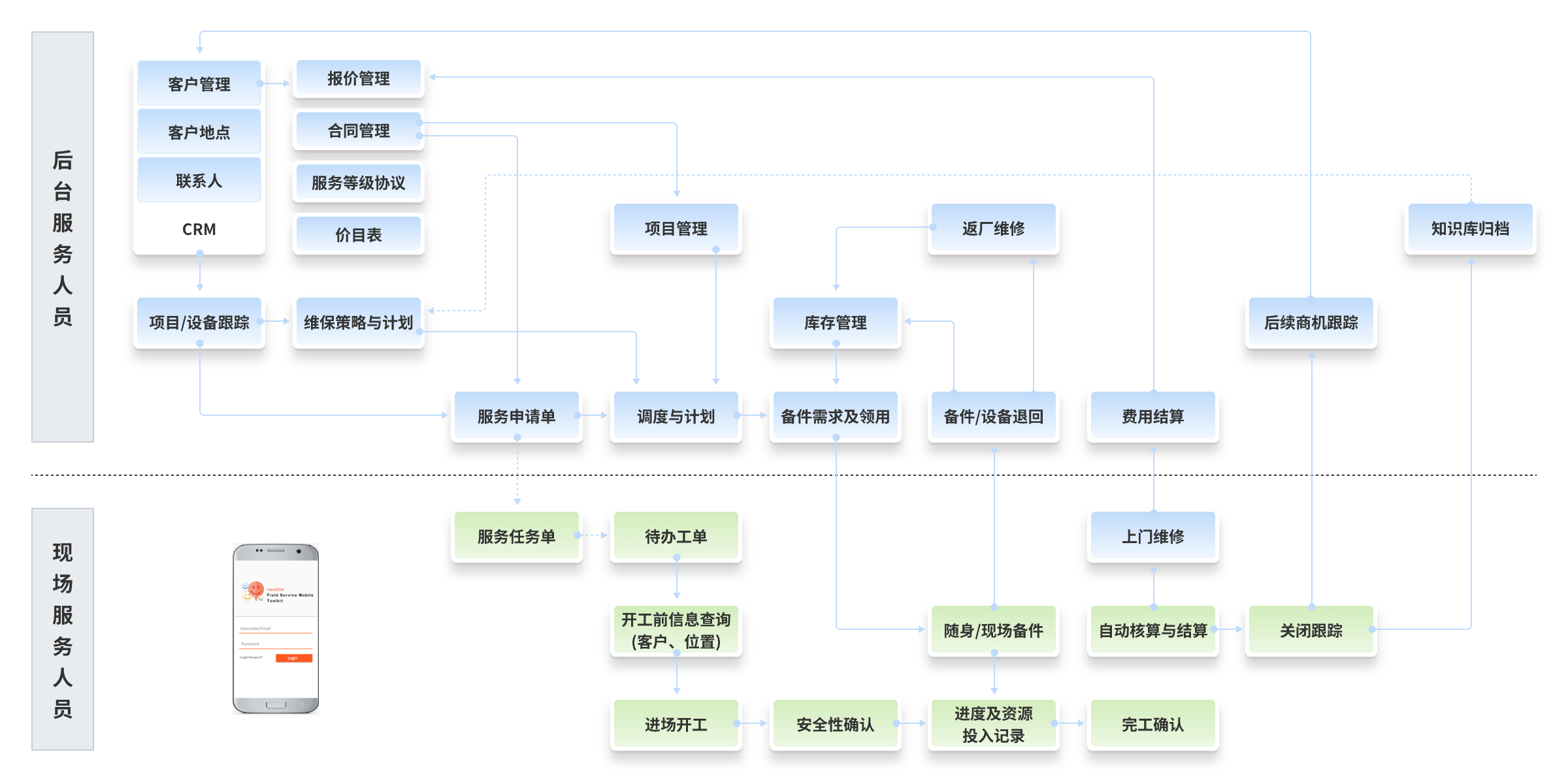 提升標準化管理水平:建立標準的售后流程和功能,固化管理流程,標準化體系運作;提供移動化管理工具,提升售后服務效率